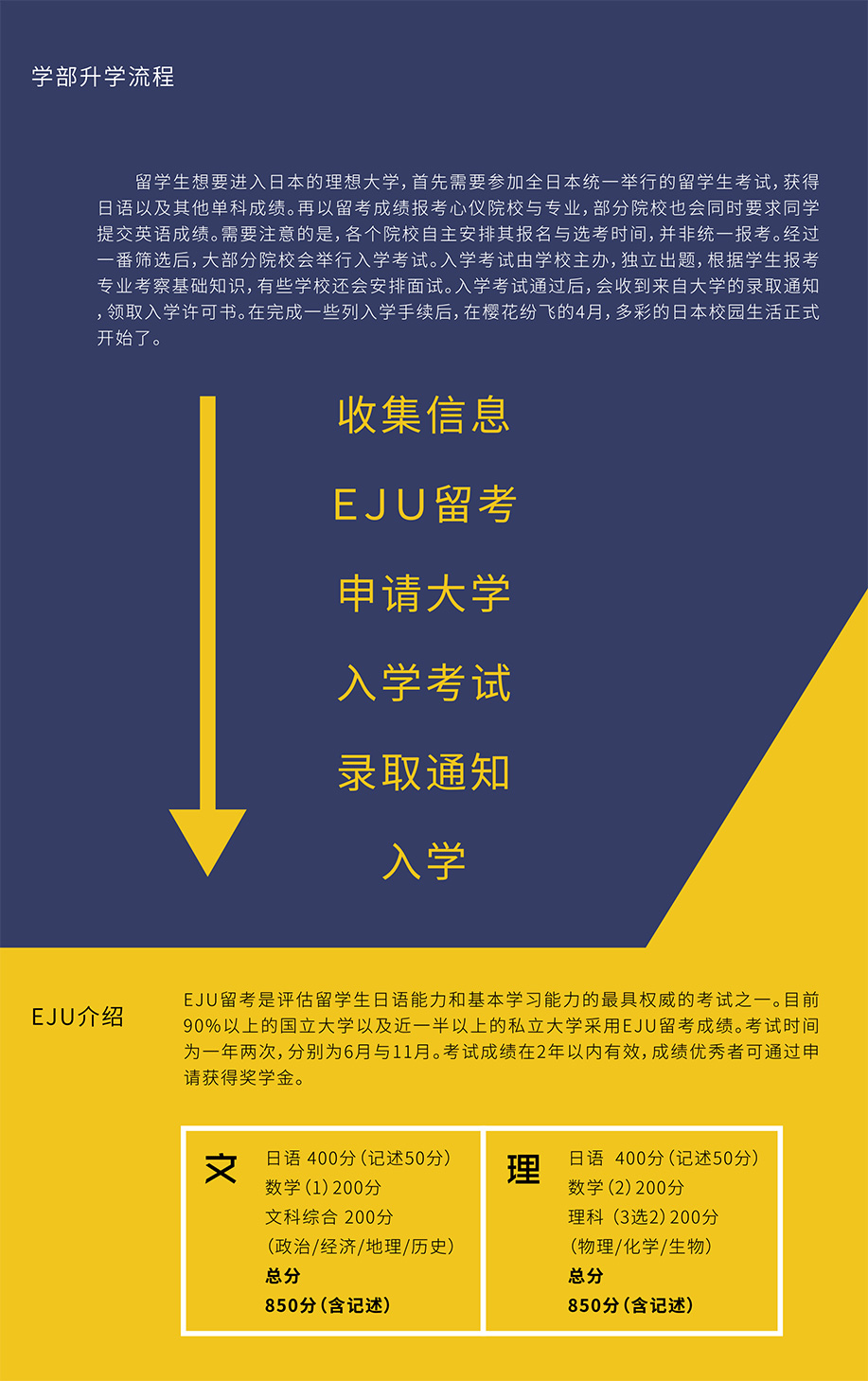 “日本留学考试”是针对外国留学生考入日本的大学的一种考试制度。考试分文科、理科。考试内容,文科有:日本语、数学、小论文、综合科目(含政治、经济、历史、地理、社会);理科有:日本语、数学、小论文、理科(含物理、化学、生物,其中任选2科目)除日语教学以外我们还设有特别私塾(另收费)文科和理科的补习班。
