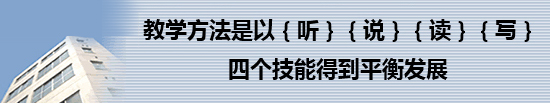 教学方法是以{读}{听}{说}{写},4个技能都能平衡发展。